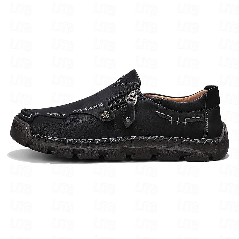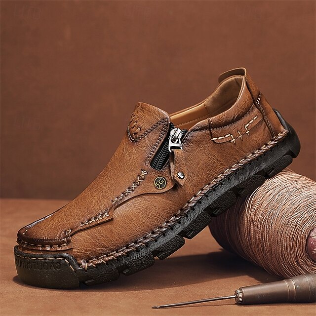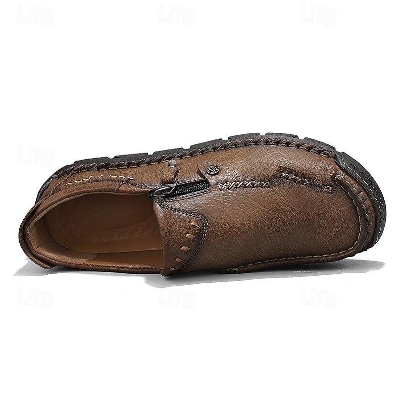 Men's Brown Faux Leather Slip-On Loafers with Side Zipper and Hand-Stitched Details – cushy Casual Shoes for Work, Travel, and Daily Wear