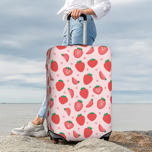 HOT ! Strawberry Print Luggage Cover For Suitcase,Washable Elastic Travel Suitcase Protector With Zipper Closure And Bottom Buckle – Fits 18-32" Luggage-Large