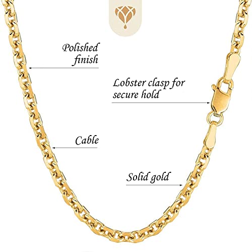 14k SOLID Yellow or White Gold 3.1mm Shiny Diamond Cut Cable Link Chain Necklace for Pendants and Charms with Lobster-Claw Clasp (18", 20", 22", or 24 inch) 5