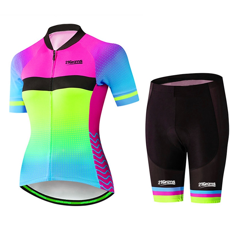 More information about Women's Cycling Jersey with Shorts Short Sleeve Mountain Bike MTB Road Bike Cycling Pink Blue Orange Polka Dot Rainbow Gradient Bike Breathable Quick Dry Ultraviolet Resistant Spandex Sports Solid