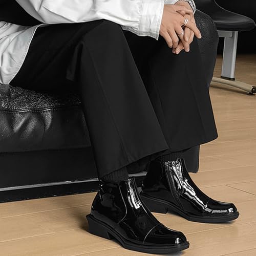 Men's Patent Leather Block Heel Chelsea Boots with Side Zipper Square Toe Comfort Business Dress Ankle Boots for Evening Dating Wedding 6