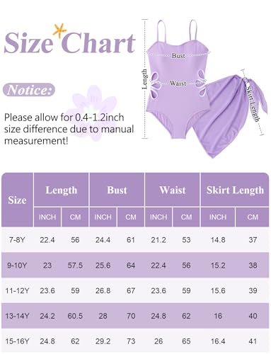 • Girls Bathing Suit features a trendy cut-out petal design with a round neckline and adjustable straps for a customizable fit. This Girls One Piece Swimsuit comes with a matching Cover Up Skirt, adding both modesty and sun protection