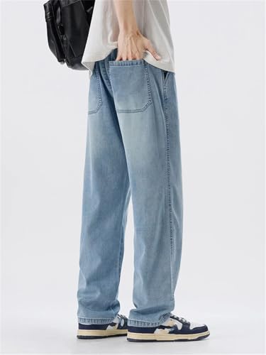 Men's Loose Jeans Thin Anti-Wrinkle Cool Comfortable Drape Fabric Baggy Wide-Leg Ice Silk Trousers 7