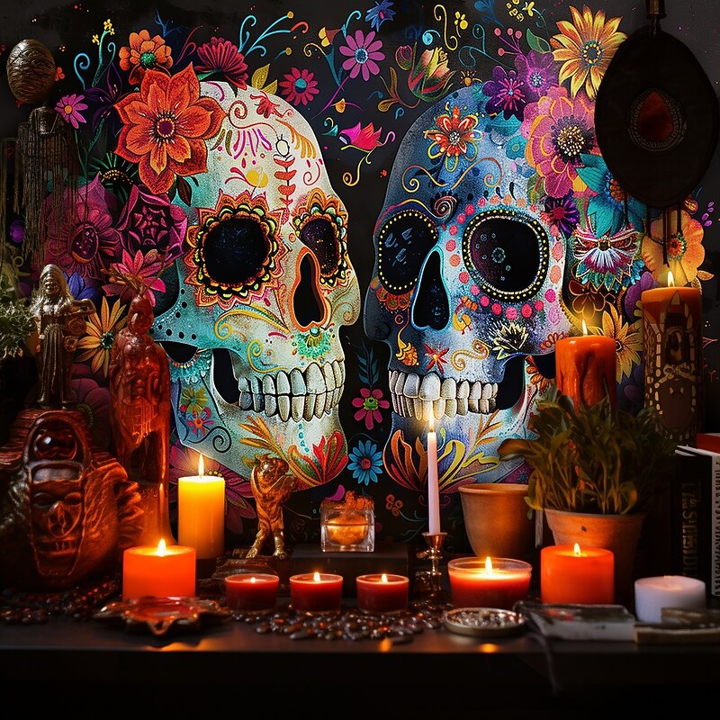 More information about Day of the Dead Tapestry Banners Wall Hangings Skeleton Flower Mexico Dark Punk Gothic Style Party Dorm Shooting Backgrounds Home Decor