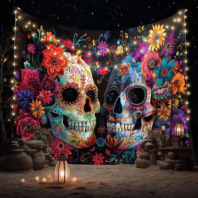 $17.49 - Day of the Dead Tapestry Banners Wall Hangings Skeleton Flower Mexico Dark Punk Gothic Style Party Dorm Shooting Backgrounds Home Decor 2025. Shop for cheap Halloween Wall Tapestries online? Buy at lightinthebox.com on sale today!