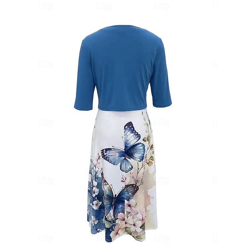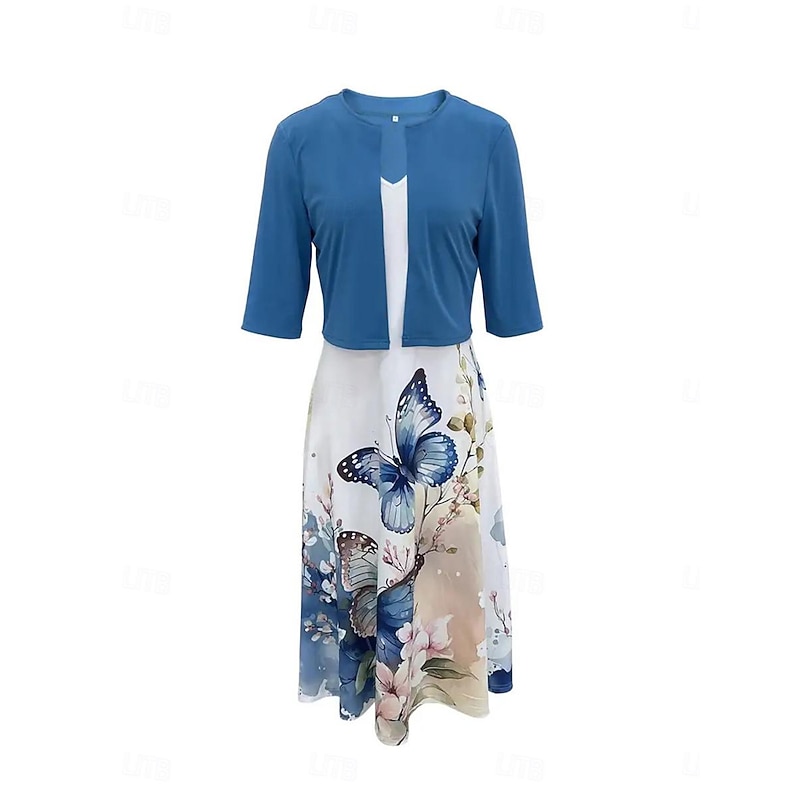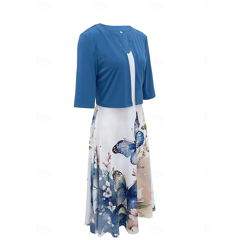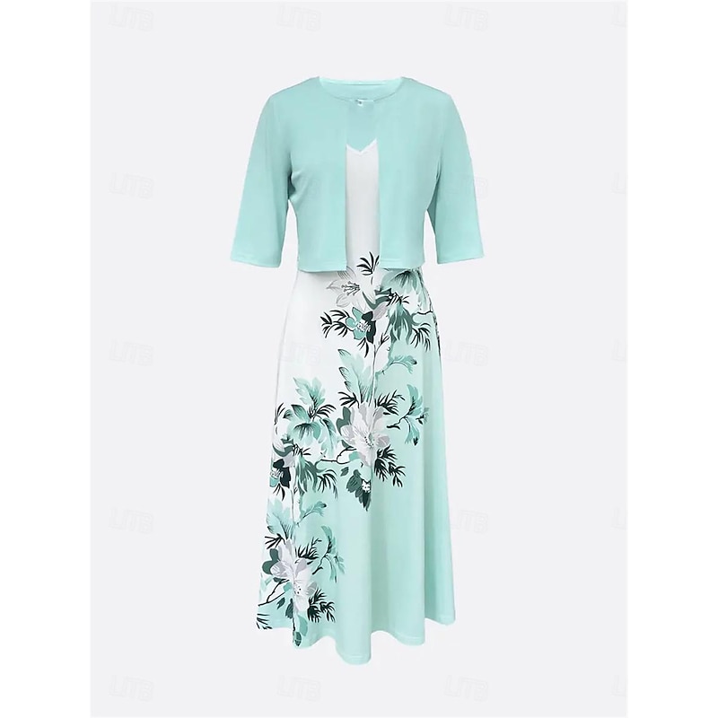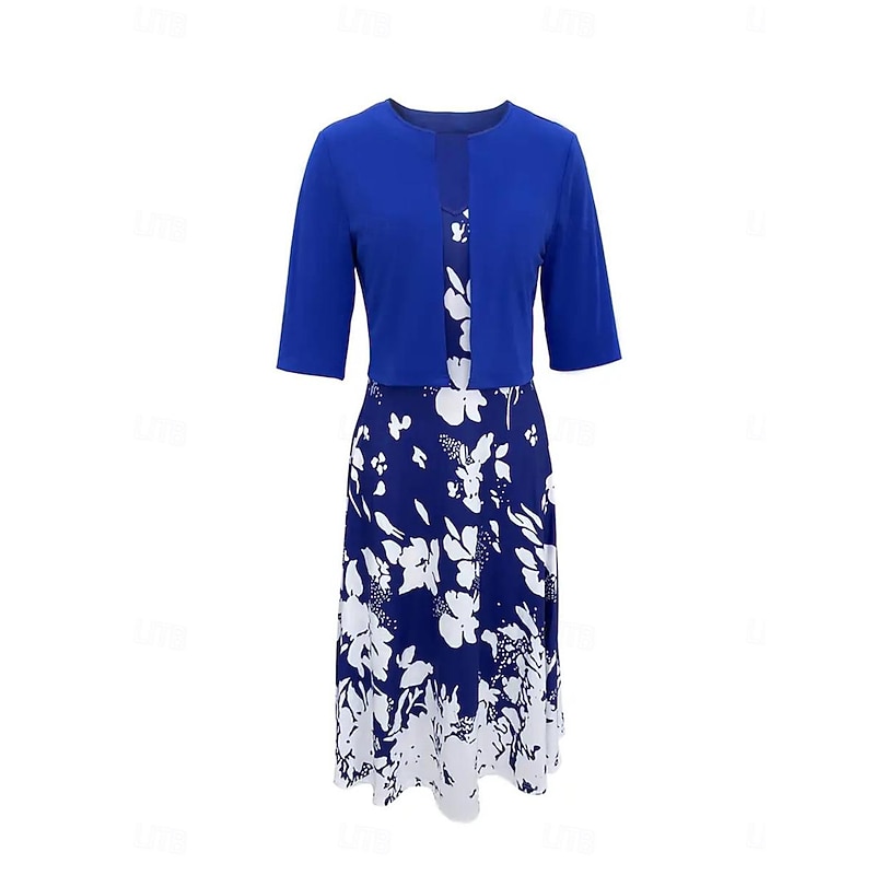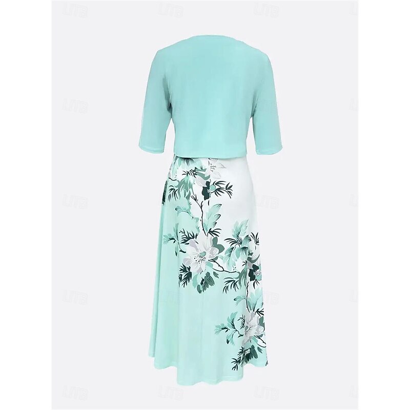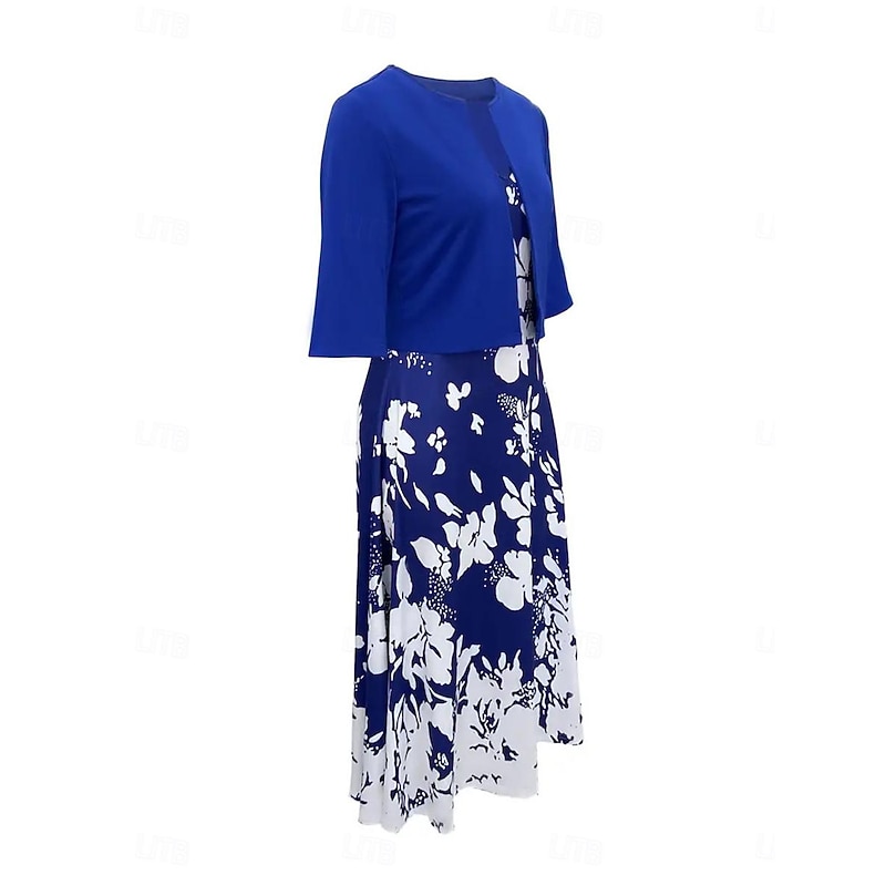 More information about Women's Dress Set Casual Dress Swing Dress Print Dress Fashion Modern Floral Print Midi Dress Half Sleeve V Neck Outdoor Date White Royal Blue Blue Summer Regular Fit