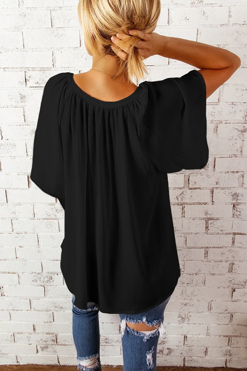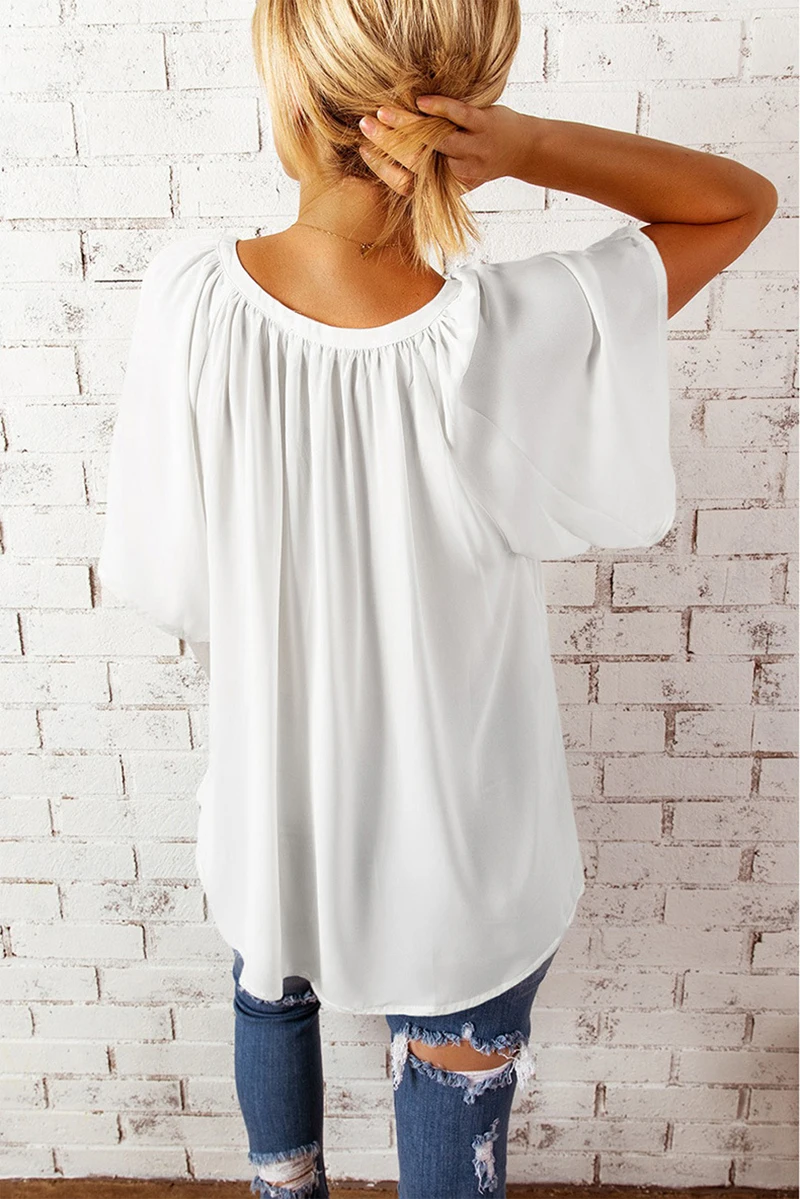The Summer New Loose V-neck Top Casual Women's Chiffon Shirt. S-2XL works well and looks great.