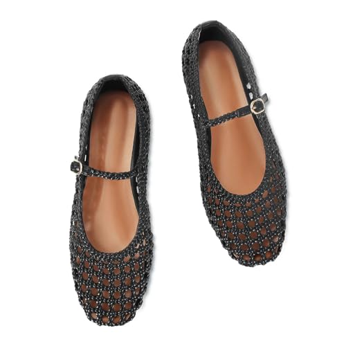 HOT ! MICIFA Woven Mesh Ballet Flats for Women Round Toe Mary Jane Flats Buckle Strap Ballerina Flats Comfortable Dress Casual Flat Shoes