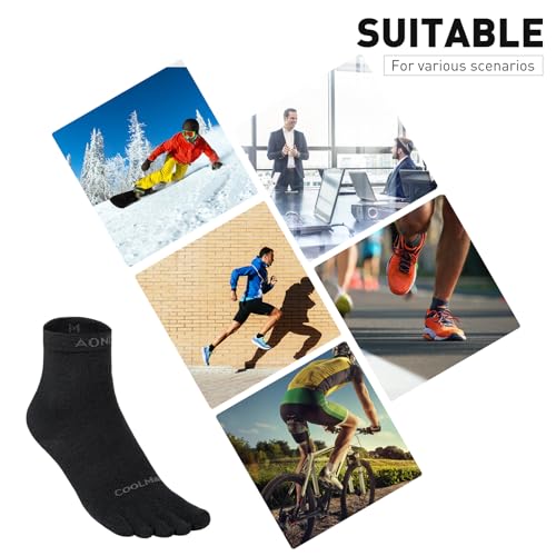 ADABOO Toe Socks, Running Five Finger Ankle Socks, 3 Pack Crew Socks Running Socks for Men, High Performance Athletic Socks 6