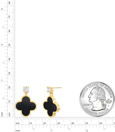 Unique Earrings for Women Trendy, 14K Gold Plated Four Leaf Clover Heart Butterfly Stud Dangle Earrings, Black Onyx White Huggie Earrings Birthday Christmas Valentine's Day Jewelry Gifts 5