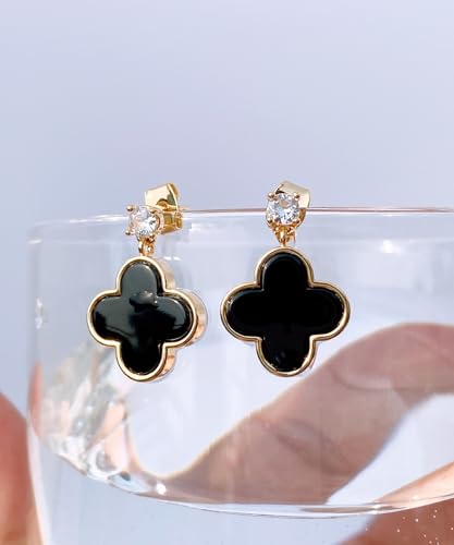 HOT ! Unique Earrings for Women Trendy, 14K Gold Plated Four Leaf Clover Heart Butterfly Stud Dangle Earrings, Black Onyx White Huggie Earrings Birthday Christmas Valentine's Day Jewelry Gifts