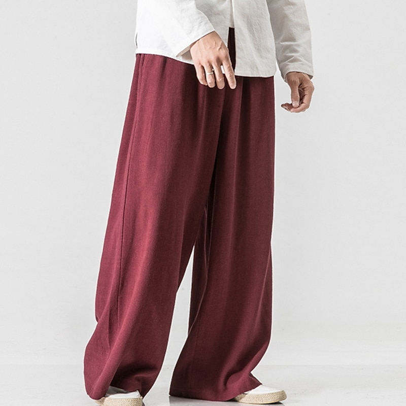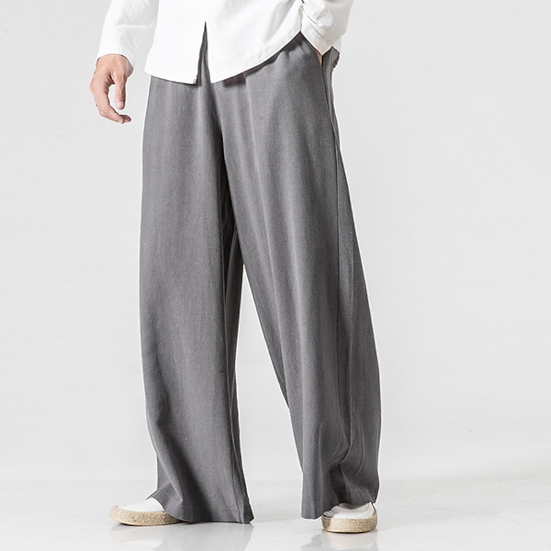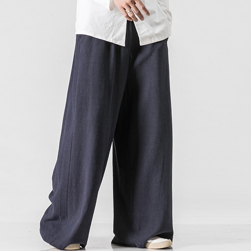 HOT ! Men's Linen Pants Trousers Summer Pants Beach Pants Wide Leg Flowy Plain Comfort Breathable Full Length Yoga Casual Holiday Fashion Streetwear Loose Fit Black Navy Blue