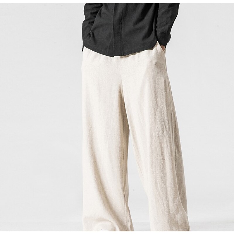 More information about Men's Linen Pants Trousers Summer Pants Beach Pants Wide Leg Flowy Plain Comfort Breathable Full Length Yoga Casual Holiday Fashion Streetwear Loose Fit Black Navy Blue