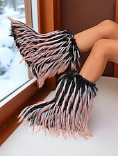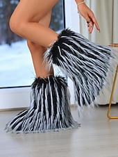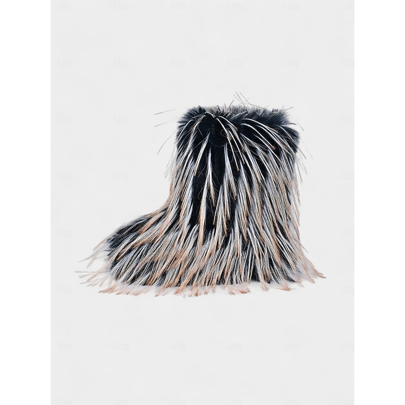 HOT ! Women's Fashion Furry Platform Boots - Pink and Black Fluffy Statement Footwear for Street Style, Winter Outfits, Rave Looks and Trendy Festival Wear