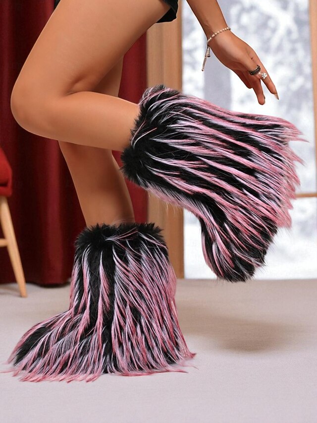 Women's Fashion Furry Platform Boots - Pink and Black Fluffy Statement Footwear for Street Style, Winter Outfits, Rave Looks and Trendy Festival Wear 10