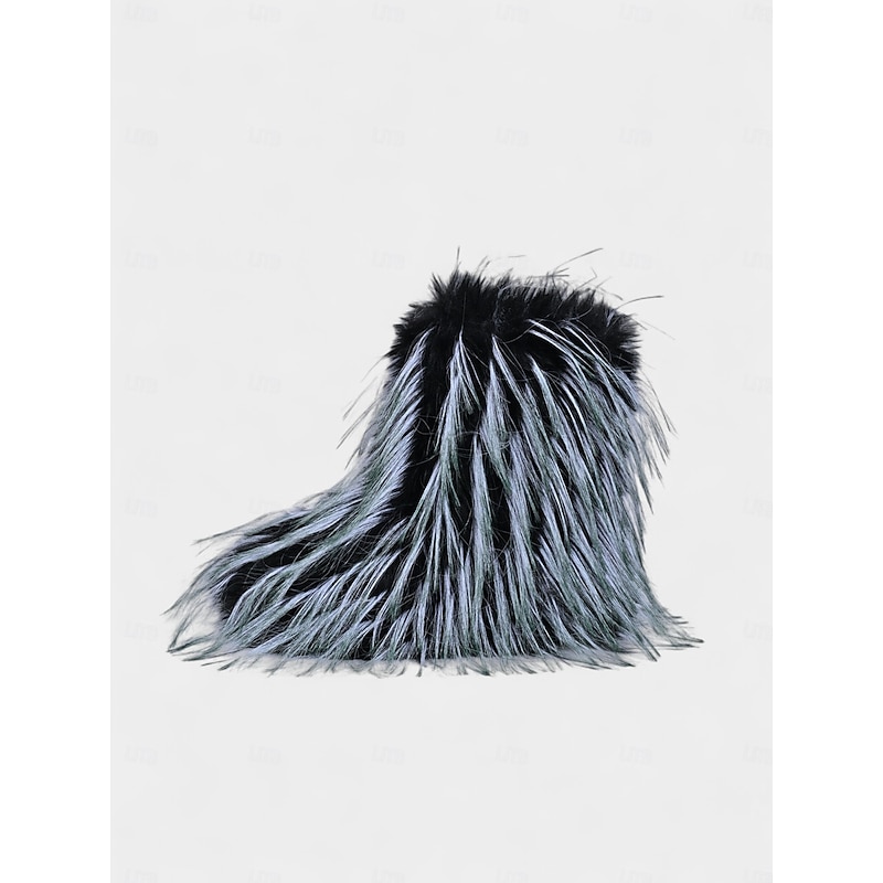 Women's Fashion Furry Platform Boots - Pink and Black Fluffy Statement Footwear for Street Style, Winter Outfits, Rave Looks and Trendy Festival Wear 17