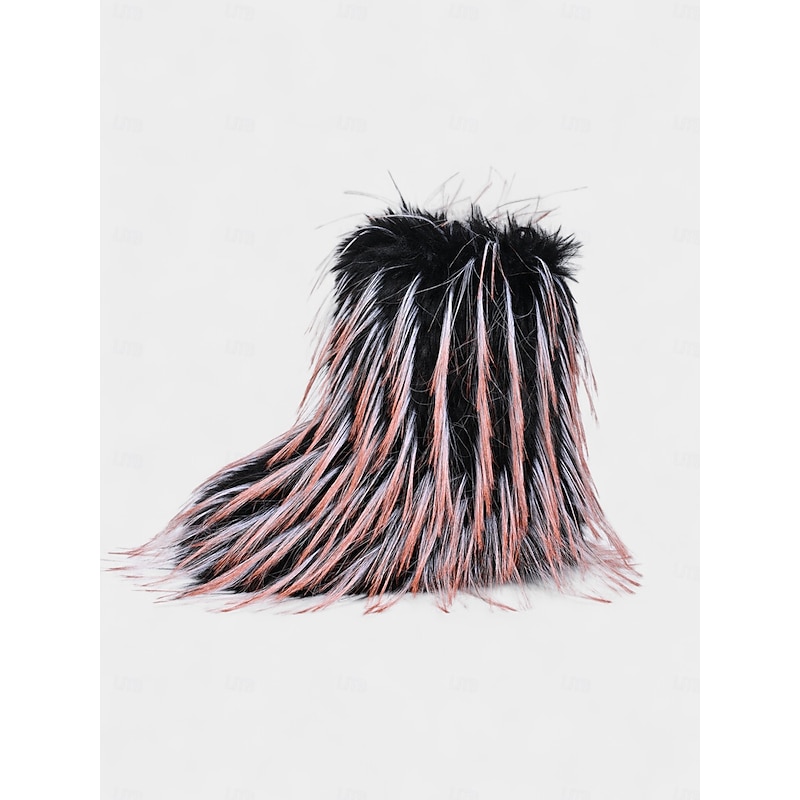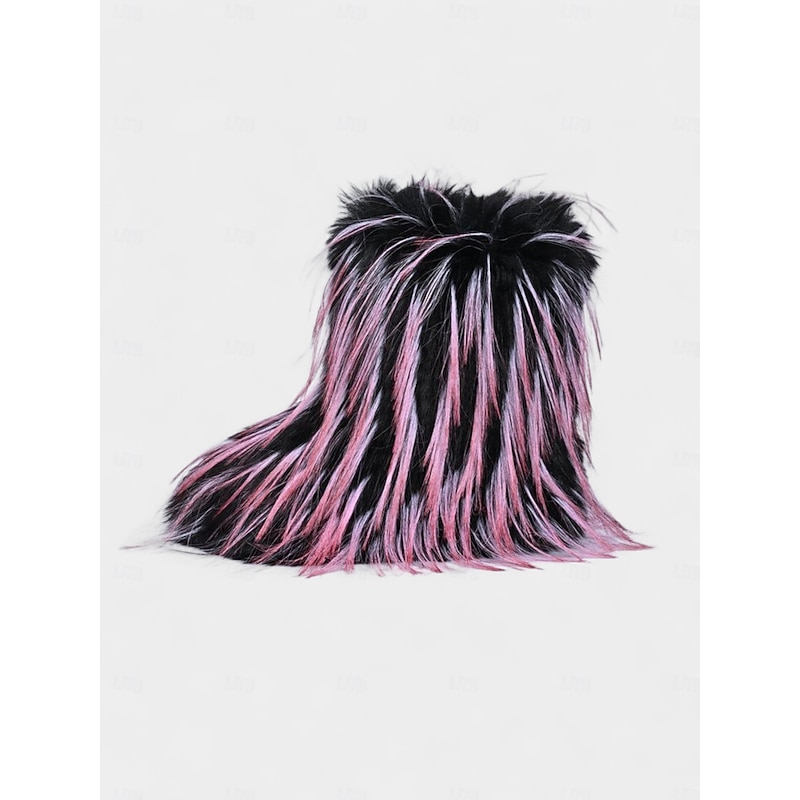Women's Fashion Furry Platform Boots - Pink and Black Fluffy Statement Footwear for Street Style, Winter Outfits, Rave Looks and Trendy Festival Wear 1