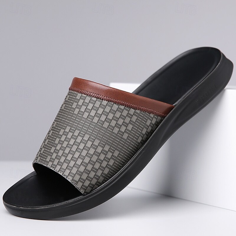 HOT ! Men's Woven Style Faux Leather Slide Sandals Textured Upper Comfortable Slip-On Design Perfect for Relaxing Poolside and Vacation Wear
