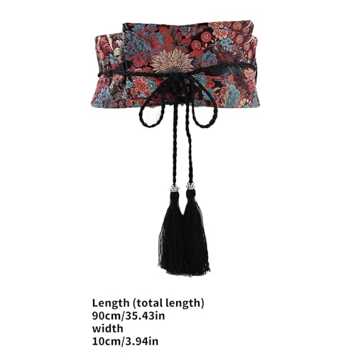 • Traditional Chinese vintage belt, decorative Printed fabric tasseled cloth waistband, decorative clothing waist decor.
