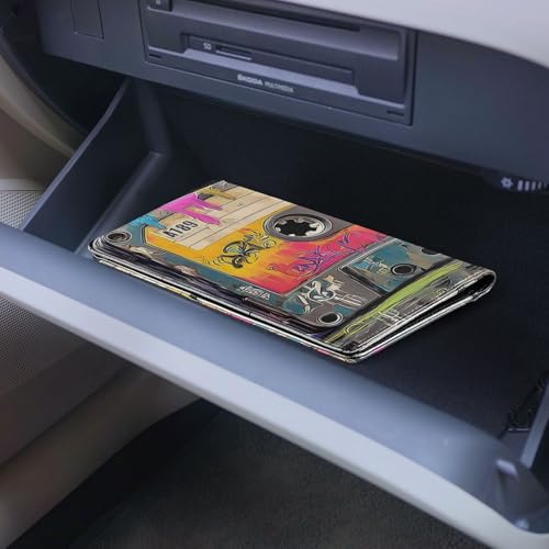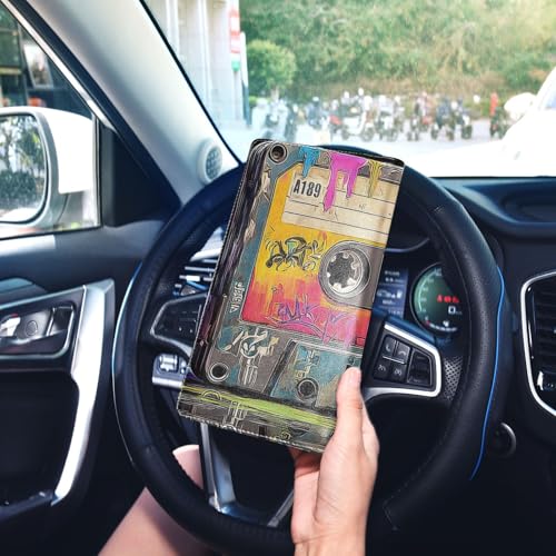 Car Registration and Insurance Holders Art Cassette Print, PU Leather for License Documents Cards 7