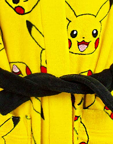 • PIKACHU BATHROBE WITH PIKACHU CHARACTER HOOD FOR KIDS - This Pokemon bath robe for boys & girls comes in bright yellow with bold black accents including an easy to tie belt. Featuring a cute all over print of fan favourite Pokemon, Pikachu and finished with a super fun character print of Pikachu's face across the hood!