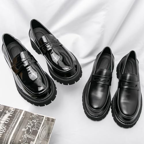 Men's Patent Leather Platform Slip-on Loafers,Fashion Round Toe Non-Slip Thick Sole Business Dress Shoes Causal Party Wedding Prom Shoes 6