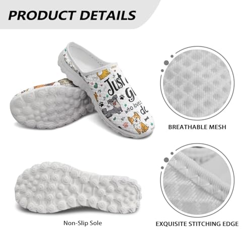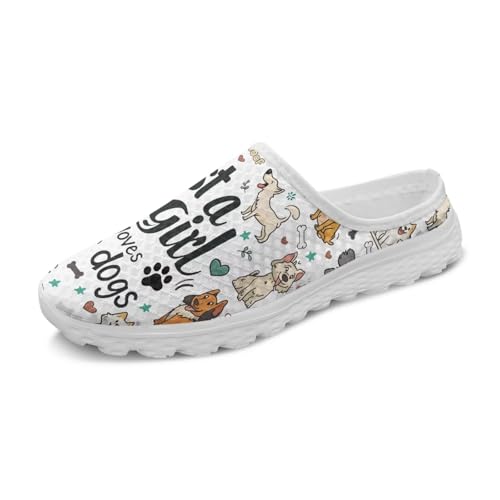 Dog Print Womens Mules Slip on Sneaker Round Toe Classic Garden Clogs Low Top Loafers Tennis Shoes 5