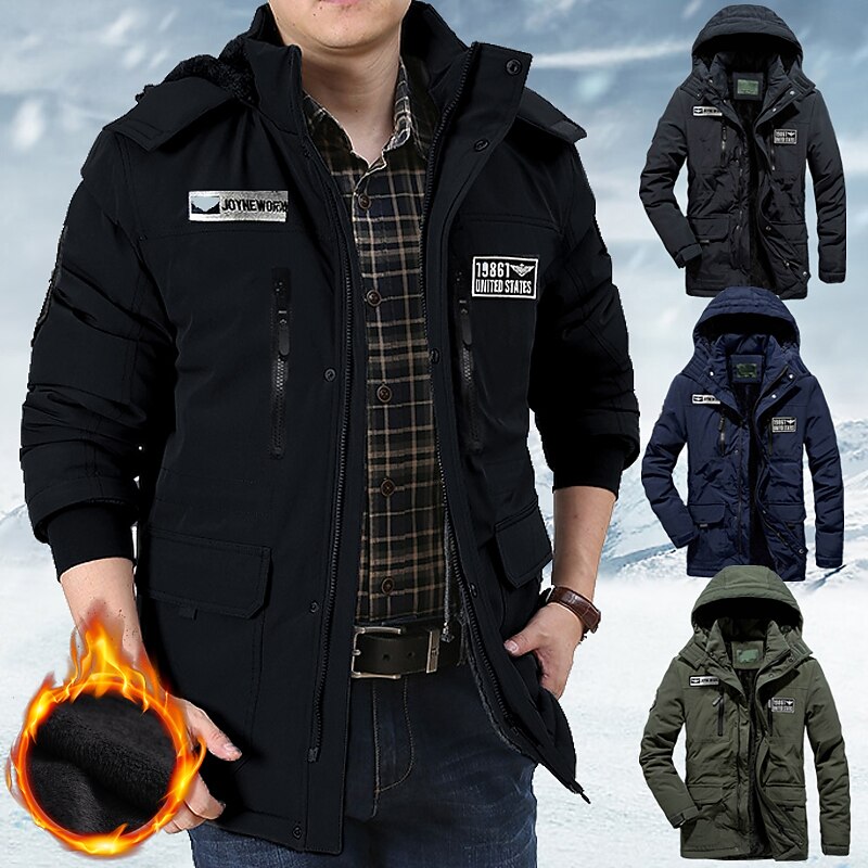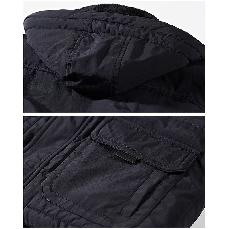 More information about Men's Fleece Jacket Winter Jacket Thick Warm Hooded Parka Military Windbreaker Winter Outdoor Windproof Lightweight Detachable Cap Trench Coat Outerwear Top Skiing Fishing Climbing Light Blue Screen