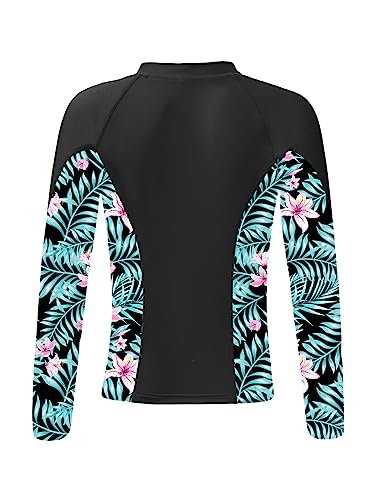 Linjinx Kids Girls 3-Piece Long Sleeve Rash Guard Sets Floral Tankini Bikini with UPF 50+ Zip Rushguard Shirt Swimwear 6