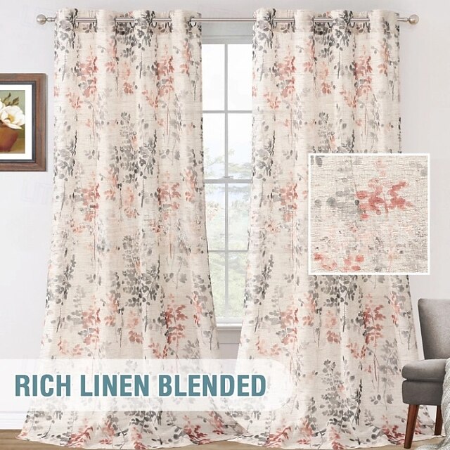 $36.99 - Sheer Linen Curtains Semi Sheer Curtains Draperies for Living Room/Bedroom Vintage Classical Floral Printing Window Treatment Grommet 2 Panels, Coral and Taupe 2025. Shop for cheap Window Treatments online? Buy at lightinthebox.com on sale today!
