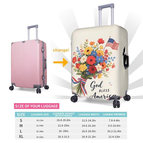 Travel Luggage Cover 4th Of July Watercolor Flowers God Bless America Independence Day Fashion Washable Baggage Suitcase Protector Fit For Luggage X-Large 6