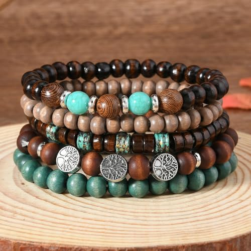 • Bohemian Style & Versatile Design Features natural wooden beads and semi-precious stones with a "Tree of Life" charm, perfect for bohemian fashion lovers. Unisex design ideal for both women and men to stack or wear solo.