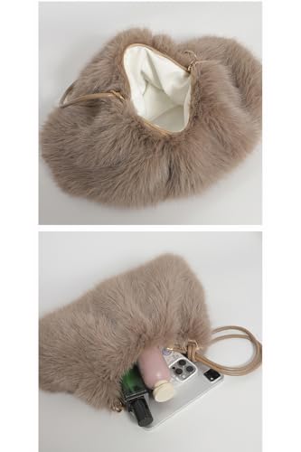 Ulisty Women Small Faux Fox Fur Hobo Bag Furry Underarm Bag Plush Shoulder Bag Fashion Purse Handbag 7