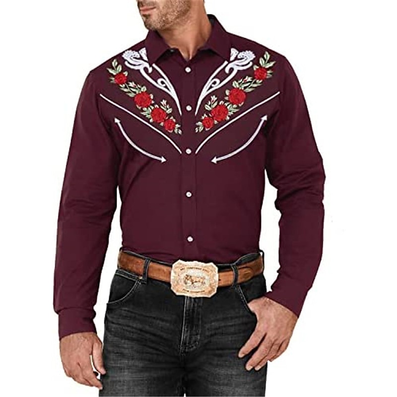 Men's Floral Graphic Prints Shirt Western Shirt Cowboy Shirt Long Sleeve Fashion Streetwear Designer Outdoor Daily Fall & Winter Turndown Print Button-Down Black White Wine Navy Blue Blue 10