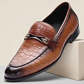 More information about Men's Brown Genuine Leather Crocodile Pattern Loafers – Luxury Horsebit Slip-On Dress Shoes for Business, Weddings and Formal Events