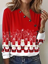 More information about Christmas Women's T Shirt Graphic Santa Claus Vintage Stylish Casual Short Sleeve Long Sleeve V Neck Regular Tops Daily Buttons Print Red Blue Purple Green Summer Winter