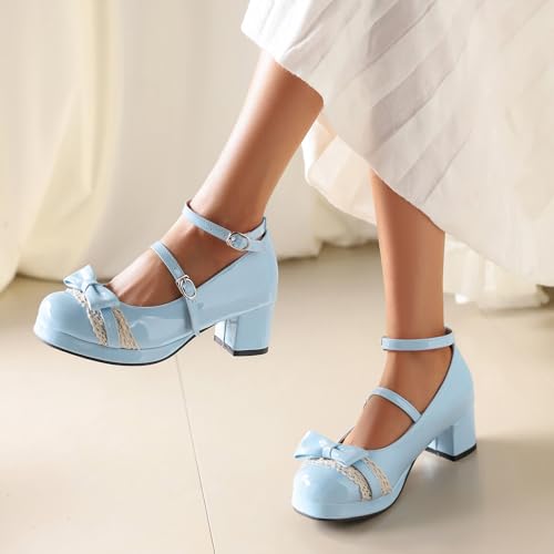 Sweet Patent Block Heel Round Toe Girl Princess Shoes 5