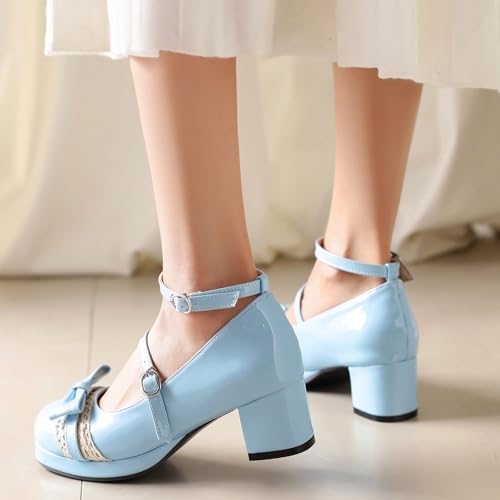 Sweet Patent Block Heel Round Toe Girl Princess Shoes 7