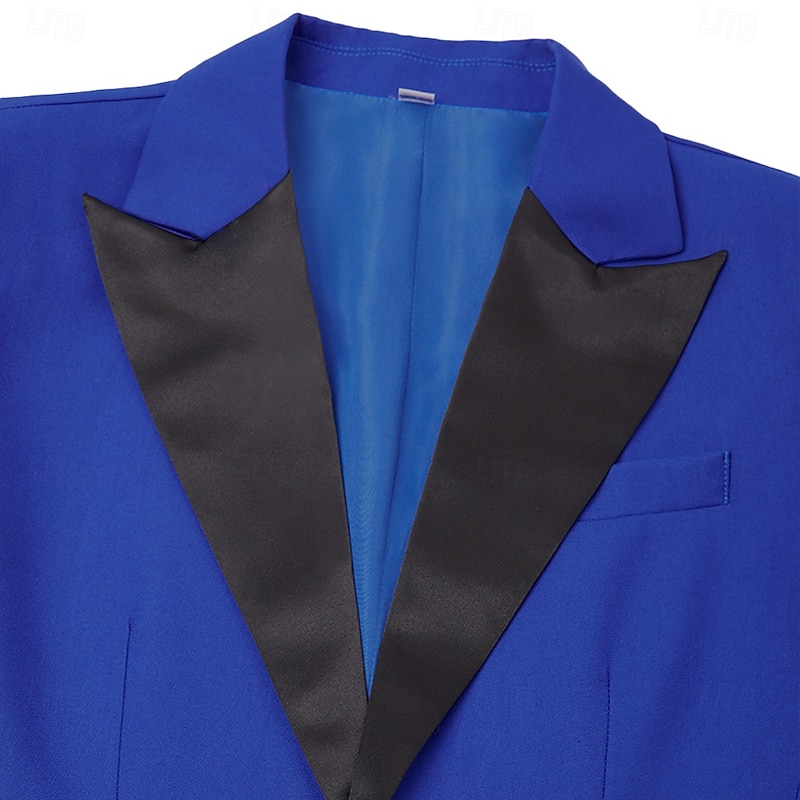Men's Wedding Party Suits Navy Blue Royal Blue Dress Solid Colored Standard Fit 3 Piece Single Breasted Two-buttons 15