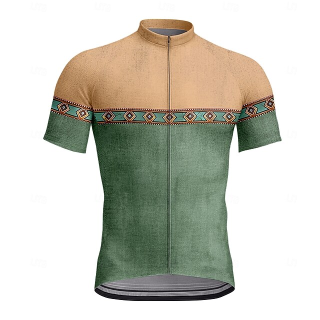More information about Men's Cycling Jersey Graphic Geometric Retro Short Sleeve Bike Jersey Top with 3 Rear Pockets UV Resistant Quick Dry Front Zipper Reflective Strips Sports Green Clothing Apparel