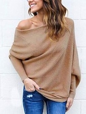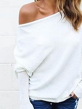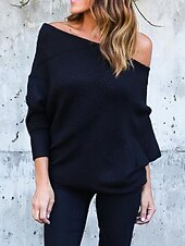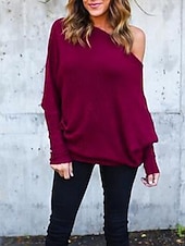 More information about Women's Sweater Pullover Fashion Soft Solid Color Ribbed Off Shoulder Knitted Long Sleeve Regular Tops Knit Outdoor Daily Going out Wine Red Black Fall