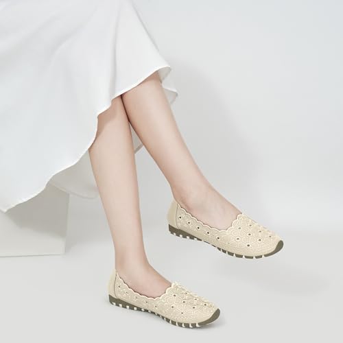 • Soft & Breathable Upper: The upper of the women's flats is made of high-quality material that is soft and comfortable. The floral pattern and hollow design on the upper are simple and elegant. The upper is breathable enough, so your feet will not feel stuffy.