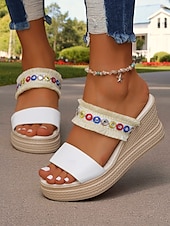 More information about Women's White Platform Slide Sandals with Colorful Beaded Fringe Straps, Boho Chic Wedge Shoes for Casual Summer Outings and Beach Vacations
