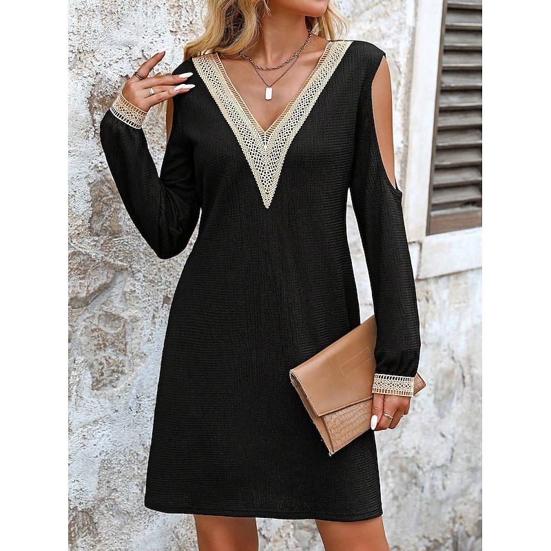 Women's Mini Dress Casual Dress A Line Dress Stylish Casual Vacation Daily Regular Fit Solid Color Long Sleeve V Neck Black Summer 1