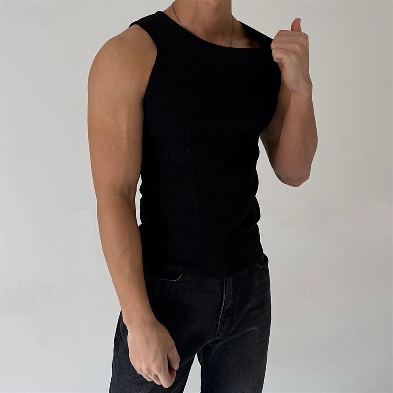 More information about Men's Tank Top Vest Top Undershirt Sleeveless Shirt Sleeveless Crew Neck Summer Plain Pit Strip Fashion Designer Basic Vacation Street Going out Black White Top Tee for Men