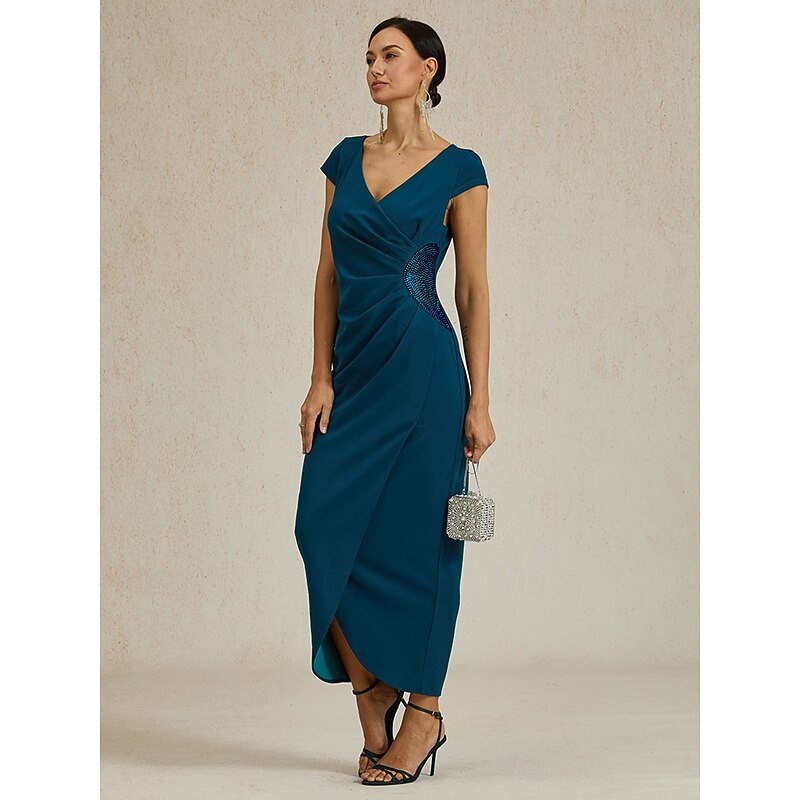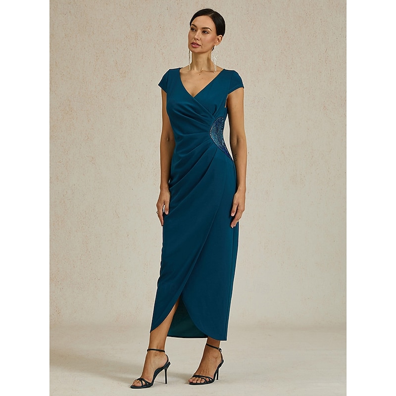 More information about Women's Maxi Dress Sheath Dress Elegant Regular Fit Solid Color Short Sleeve V Neck Ink Blue Summer Spring