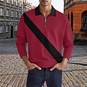 More information about Men's Color Block Rugby Polo Long Sleeve Polo Shirts Quarter Zip Fashion 3D Print Modern Daily Holiday Going out Patchwork Spring & Fall White Yellow Red