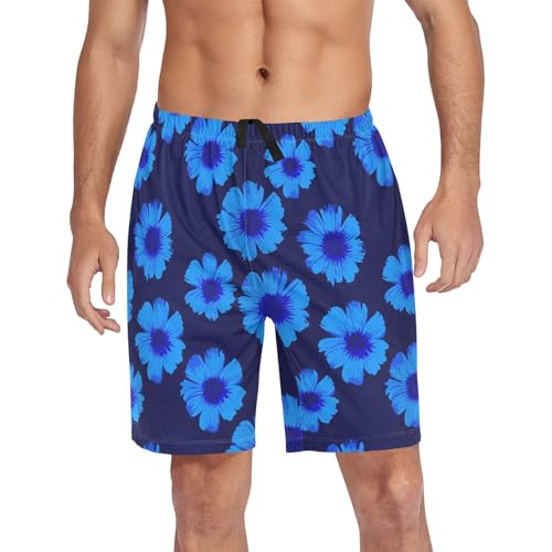 HOT ! Men's Pajama Shorts Floral Blue Pajama Bottoms Casual Athletic Sleep Shorts with Pockets 2302993