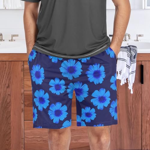 Men's Pajama Shorts Floral Blue Pajama Bottoms Casual Athletic Sleep Shorts with Pockets 2302993 2