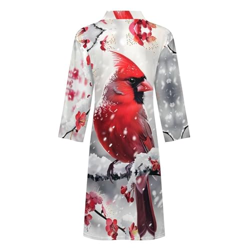 Red Bird Snowy Day Funny Men's Robe Soft Lightweight Bathrobe Long-sleeve Spa Robes 4